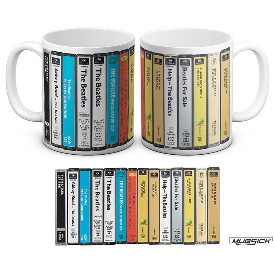 Aunque su época dorada pertenece al vinilo, muchas personas descubrieron a The Beatles en cassette, heredando cintas de familiares, grabando recopilaciones caseras o comprando ediciones que se escuchaban una y otra vez en radiocasetes y walkmans. El diseño de esta taza se inspira precisamente en esa experiencia: una colección de cassettes que evocan etapas clave de la banda, desde el encanto pop de Please Please Me y A Hard Day’s Night hasta la madurez compositiva de Rubber Soul y Revolver, sin olvidar la psicodelia de Sgt. Pepper’s Lonely Hearts Club Band o la elegancia de Abbey Road.