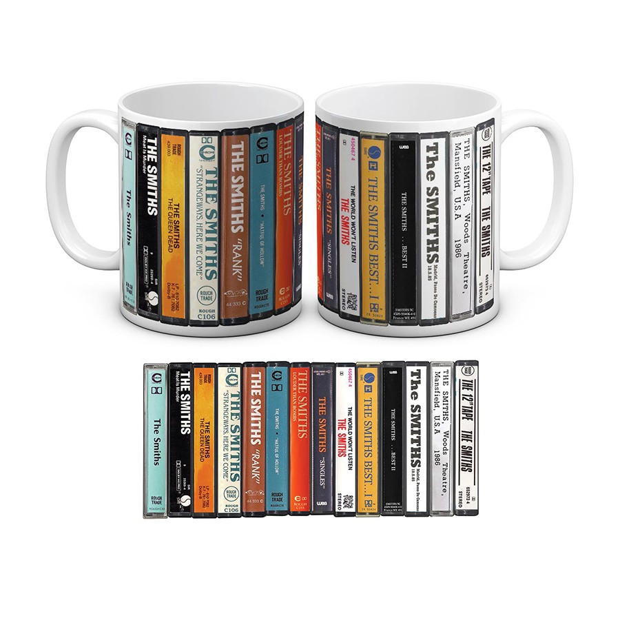 La Taza The Smiths Cassette Collection es un viaje directo a las estanterías de la adolescencia, cuando la banda de Manchester sonaba entre clics, rebobinados y notas escritas a boli en carátulas de plástico. El diseño envuelve la taza con una hilera de cassettes de The Smiths, como si hubieras colocado toda tu discografía en círculo alrededor del café de la mañana. Verás títulos imprescindibles que marcaron una generación y que, aún hoy, siguen siendo banda sonora de días grises, paseos nocturnos y cartas nunca enviadas.