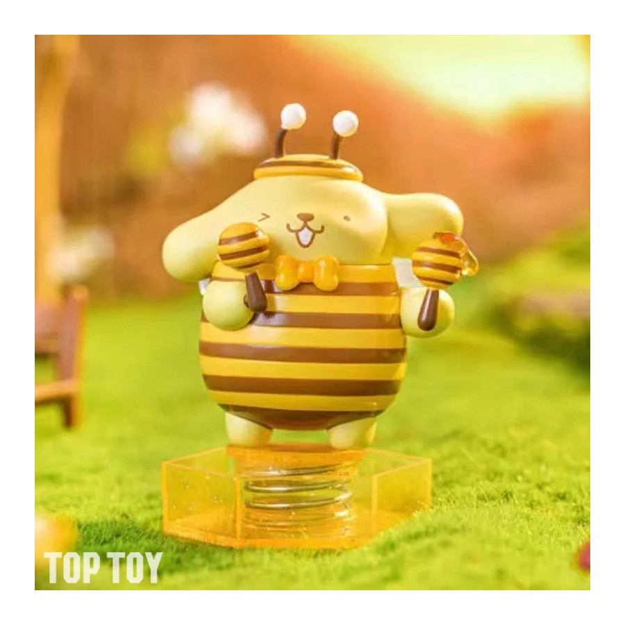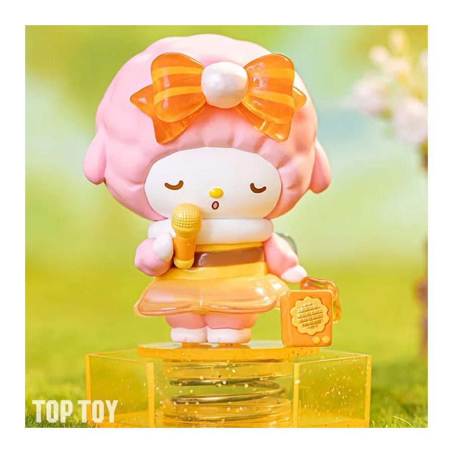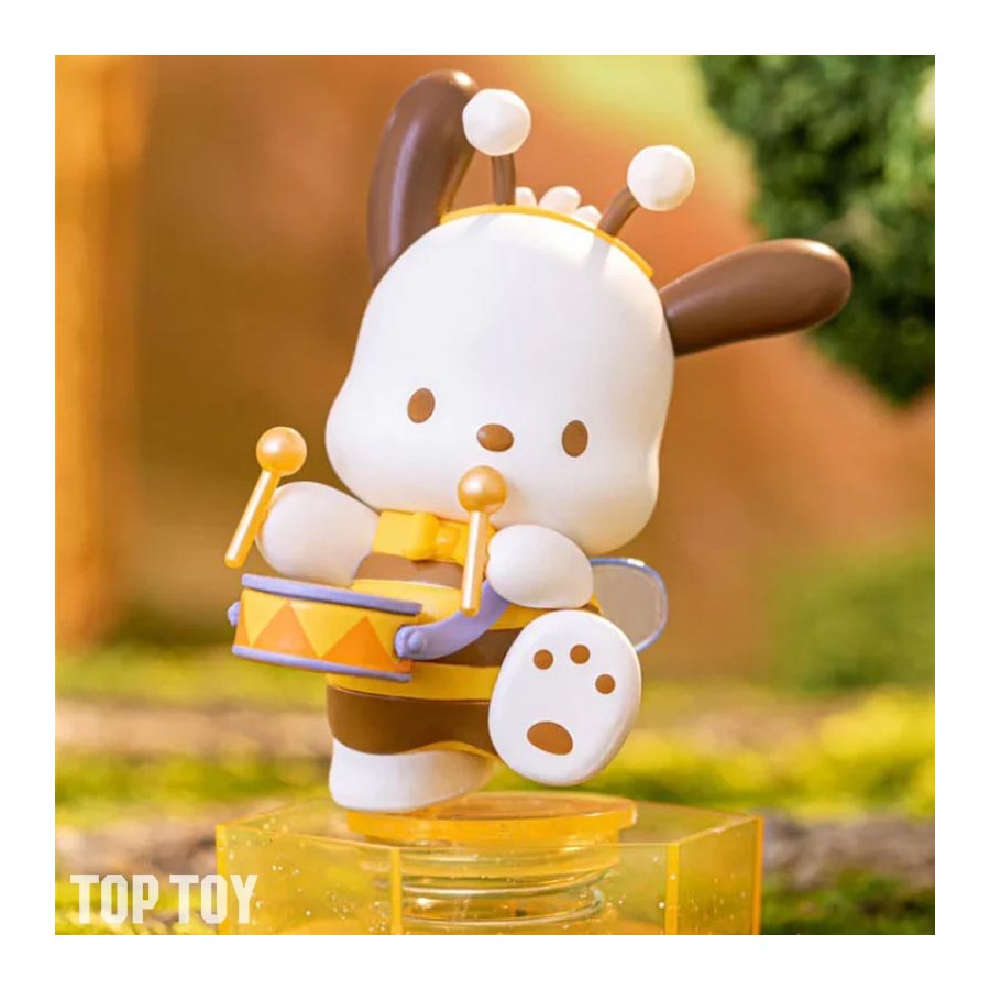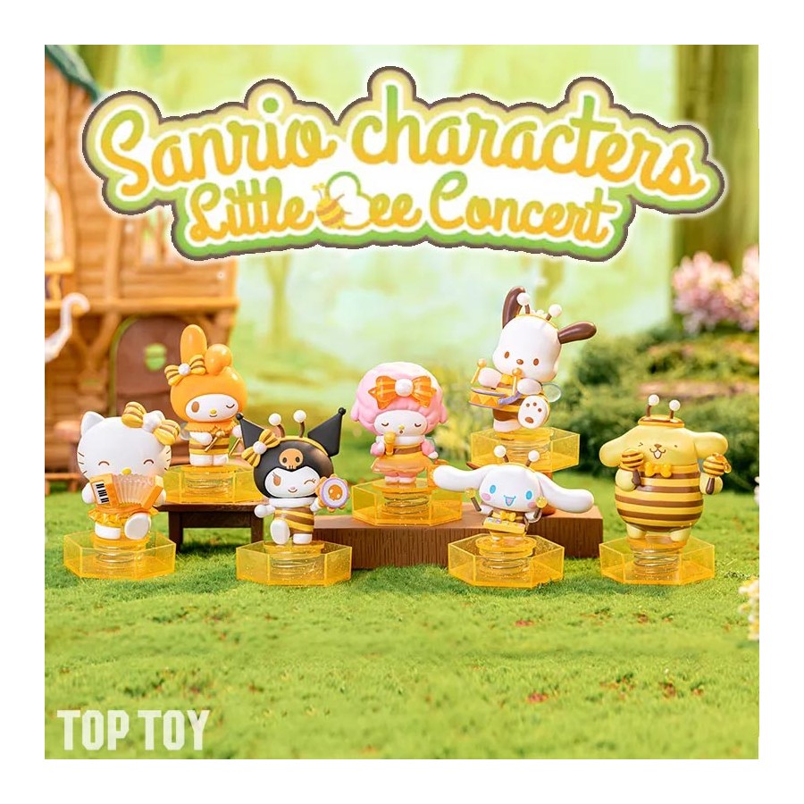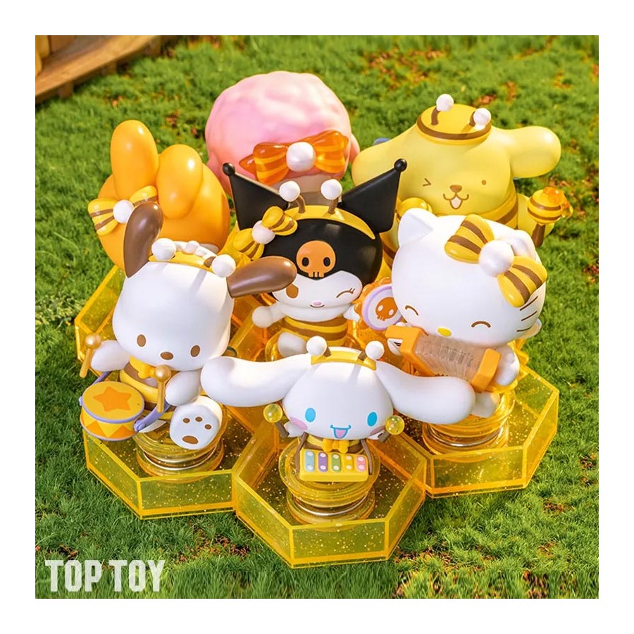 La serie Sanrio Characters Little Bee Concert TOP TOY convierte un claro del bosque en un mini escenario donde tus personajes favoritos dan un concierto dulce como la miel. El elenco que ves en la colección incluye a Hello Kitty con su acordeón, My Melody como vocalista, Kuromi marcando el ritmo con pandereta, My Sweet Piano aportando armonías suaves, Cinnamoroll flotando alegre mientras toca, Pochacco con campanillas y Pompompurin como maestro del groove. Cada figura viene caracterizada como abejita, con antenas, alitas y un accesorio musical distinto.