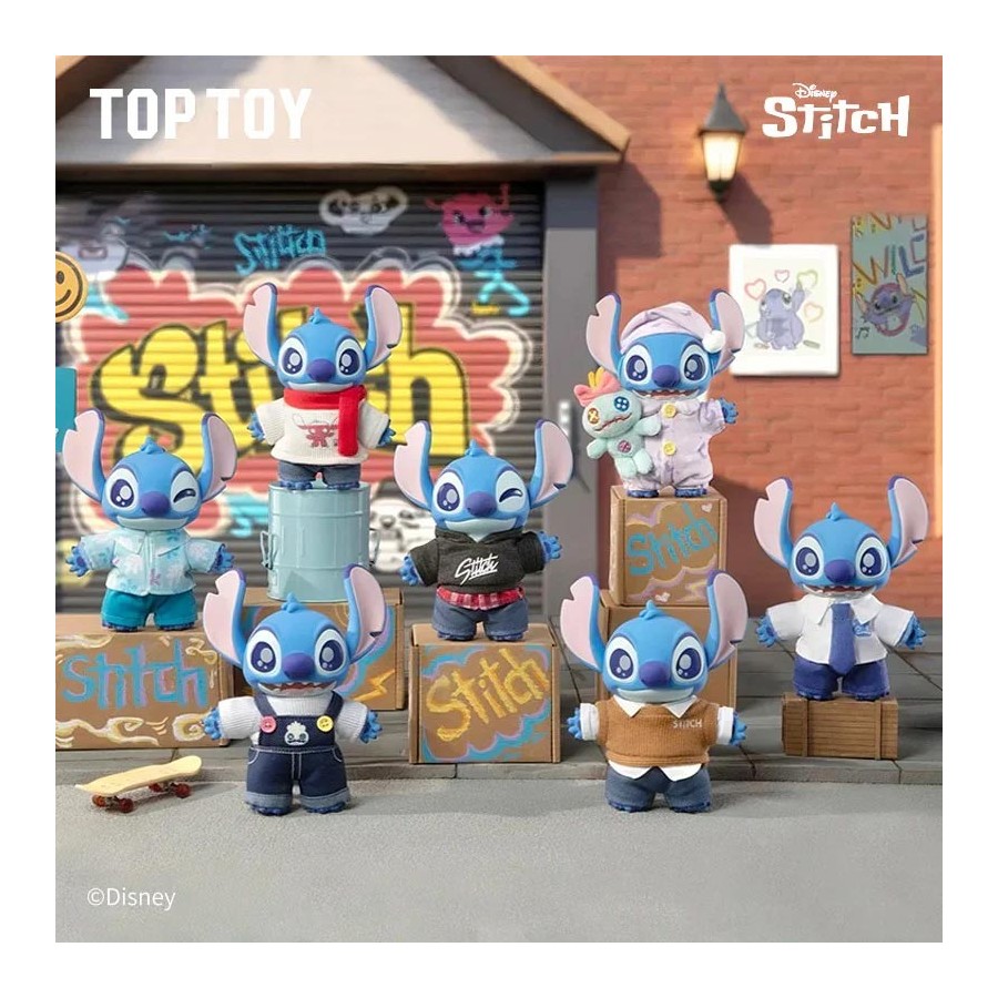 Stitch Dress Up Show TOP TOY es puro estilazo azul: 8 diseños con Stitch en clave urbana, desde sudadera y bomber hasta camisa con corbata, peto utilitario o pijama abrazando a Scrump. Cada caja es sorpresa y convierte tu estantería en un backstage mini con el Experimento 626 como estrella.