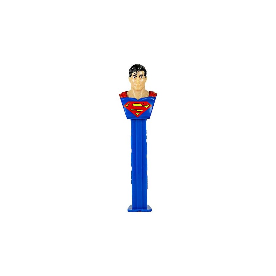 Dispensador Caramelos PEZ Superman convierte a uno de los superhéroes más reconocibles de todos los tiempos en un dispensador clásico de PEZ. La figura muestra a Superman con su traje azul y el emblemático símbolo “S” en el pecho, una imagen que se ha mantenido como referencia visual del personaje durante décadas.