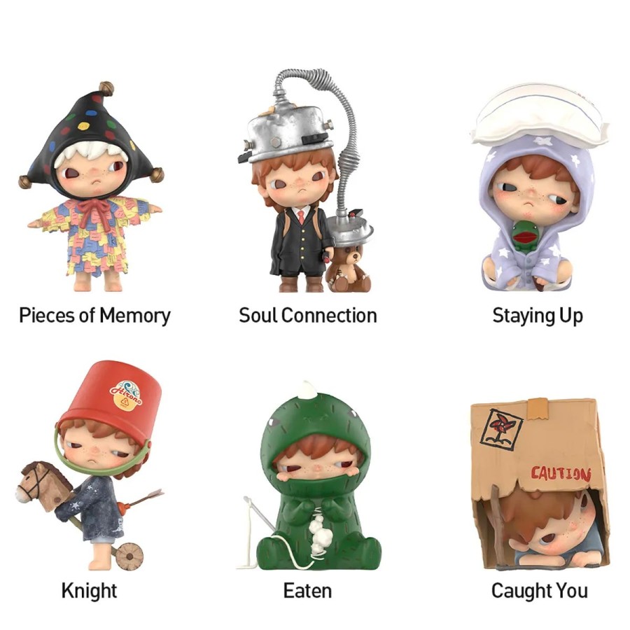 La HIRONO Echo Series POP MART explora la idea del “eco” como emoción que vuelve. Cada figura captura a HIRONO en instantes de quietud y recuerdo, con posturas pausadas, cabeza ligeramente inclinada y miradas que parecen escuchar algo que ya pasó. La dirección artística apuesta por una paleta contenida —grises suaves, azules fríos y toques cálidos— que refuerza la sensación de silencio, mientras que los detalles de ropa y accesorios añaden textura sin romper el minimalismo del conjunto.